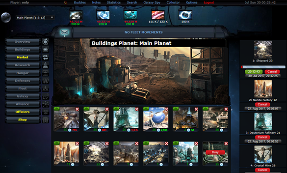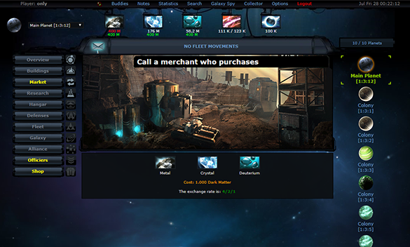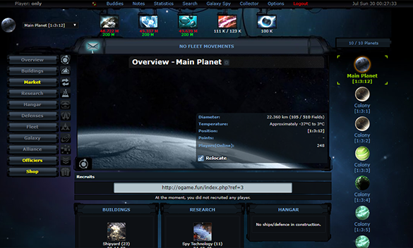 OGame is real-time space based strategy game set in space, with thousands of players from across the world competing at the same time. You only need a regular web browser to play.